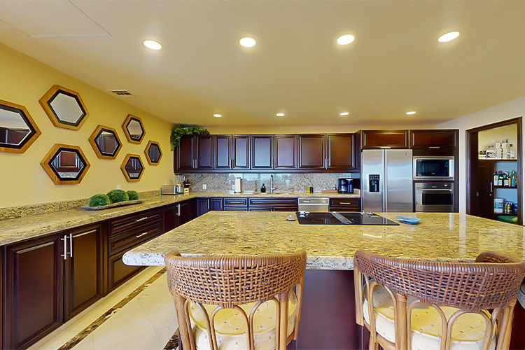 Cuenta con 3 recámaras, cada una con baño, vestidor y balcón, además de una oficina o cuarto flexible ideal para home office. La cocina, amplia y funcional, está equipada con electrodomésticos de acero inoxidable, gabinetes de madera sólida, cubiertas de granito y una gran despensa, además de cuarto de lavandería independiente.