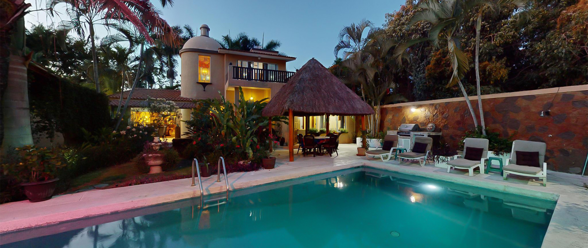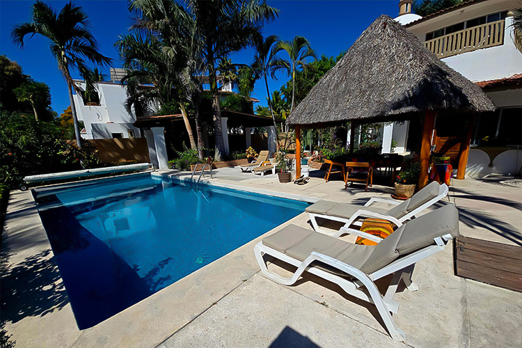 Encantadora casa tipo santuario ubicada en Villa de las Rosas, Nuevo Vallarta, ideal para quienes buscan amplitud, privacidad y el auténtico estilo de vida mexicano. Esta propiedad destaca por su enorme patio privado, jardines tropicales, alberca climatizada, palapa y área de asador, creando un entorno perfecto para disfrutar al aire libre durante todo el año.